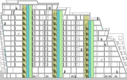 - Kompleks tworzy miasto ludzkiej skali i ogród na dziedzińcu pomiędzy ważnymi arteriami komunikacji.